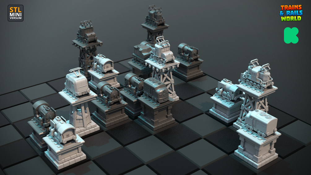 Chess Set Pedestals - STL files for 3D printing - Trains & Rails World - STL Miniversum